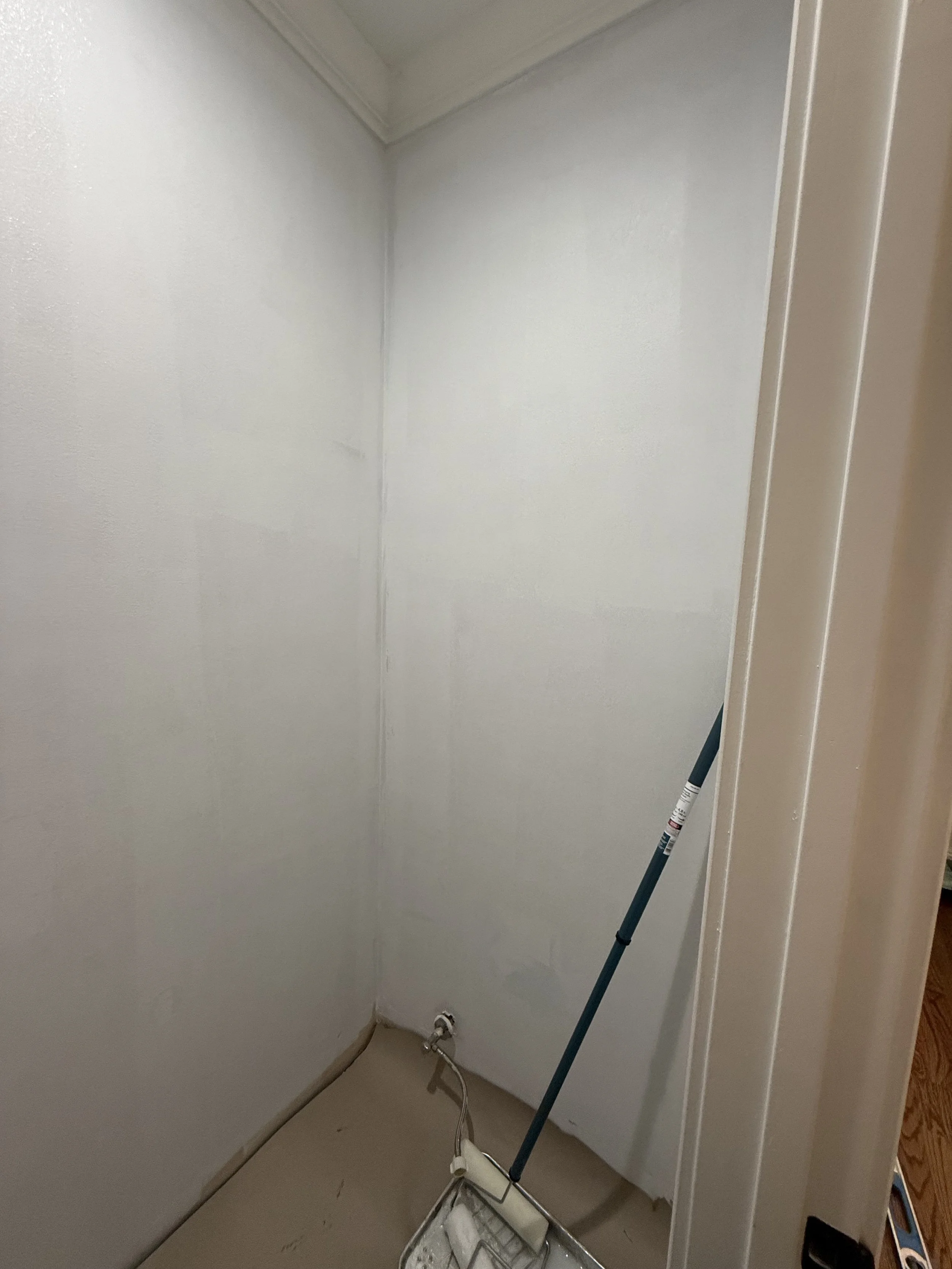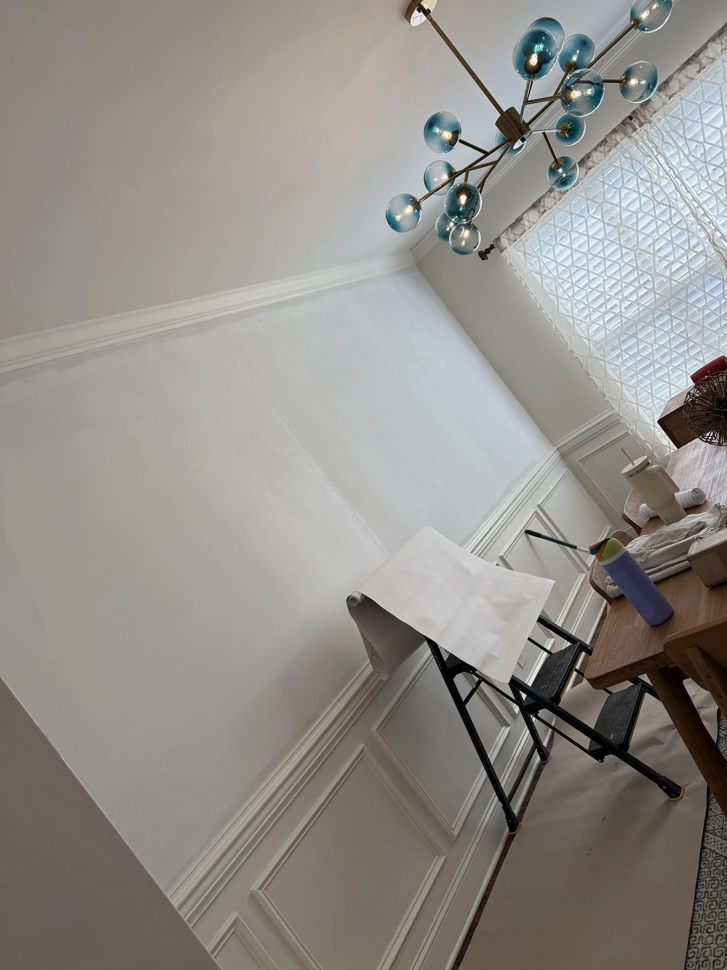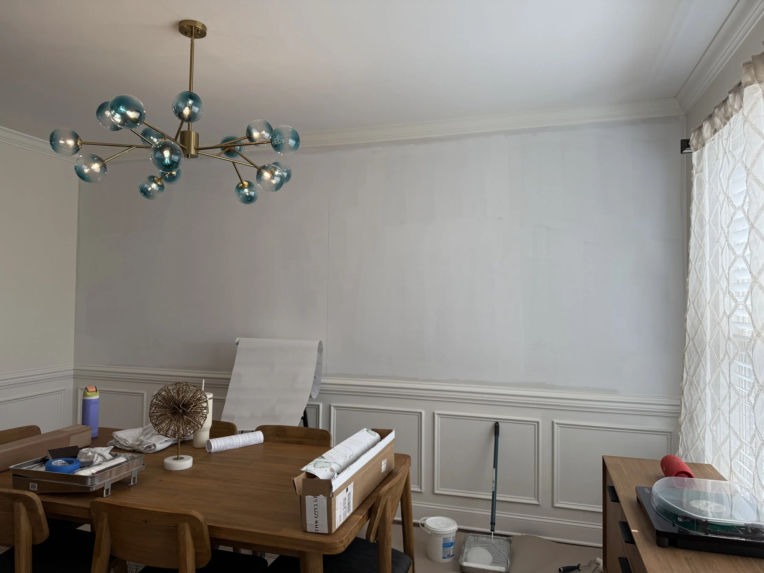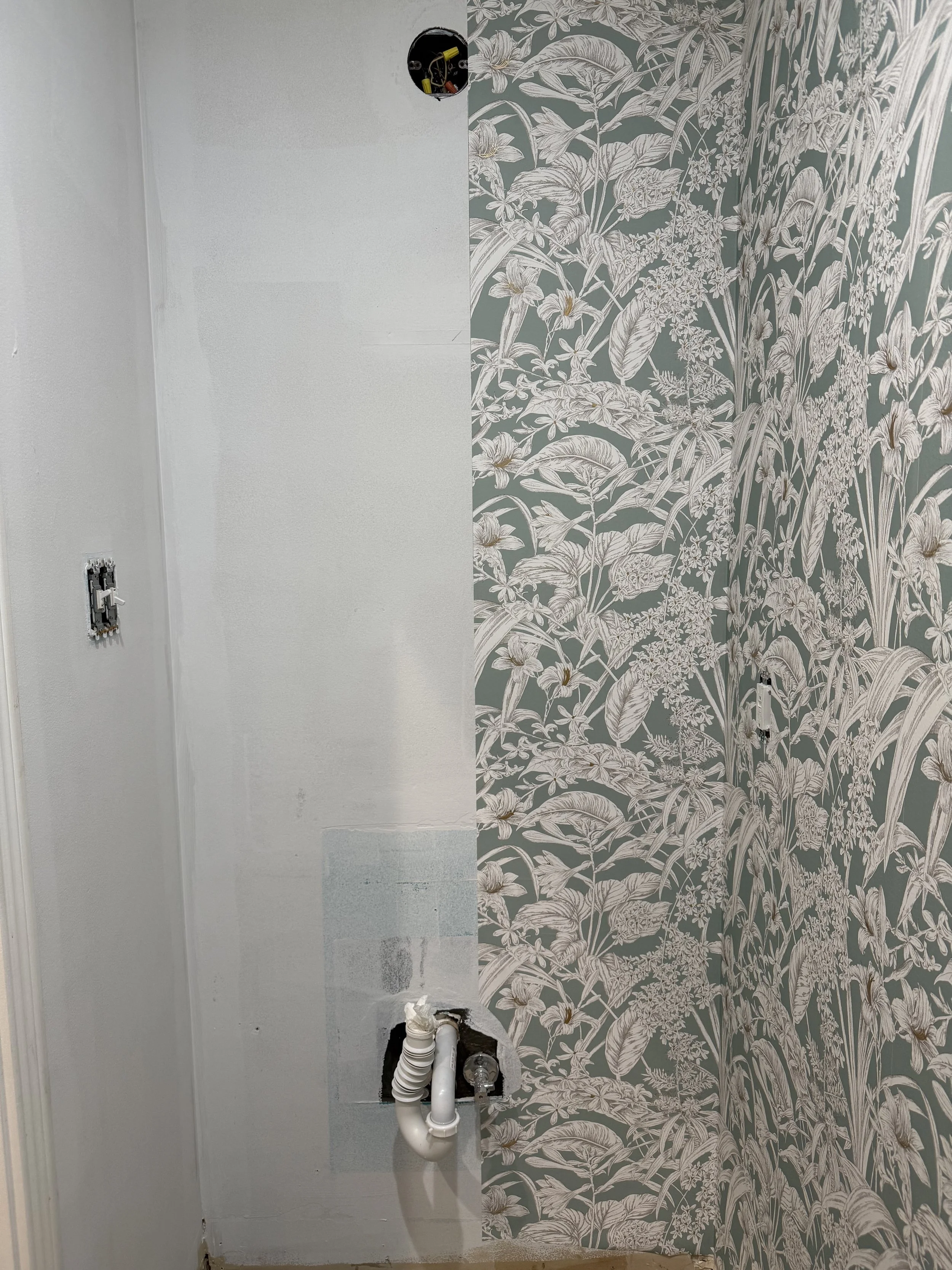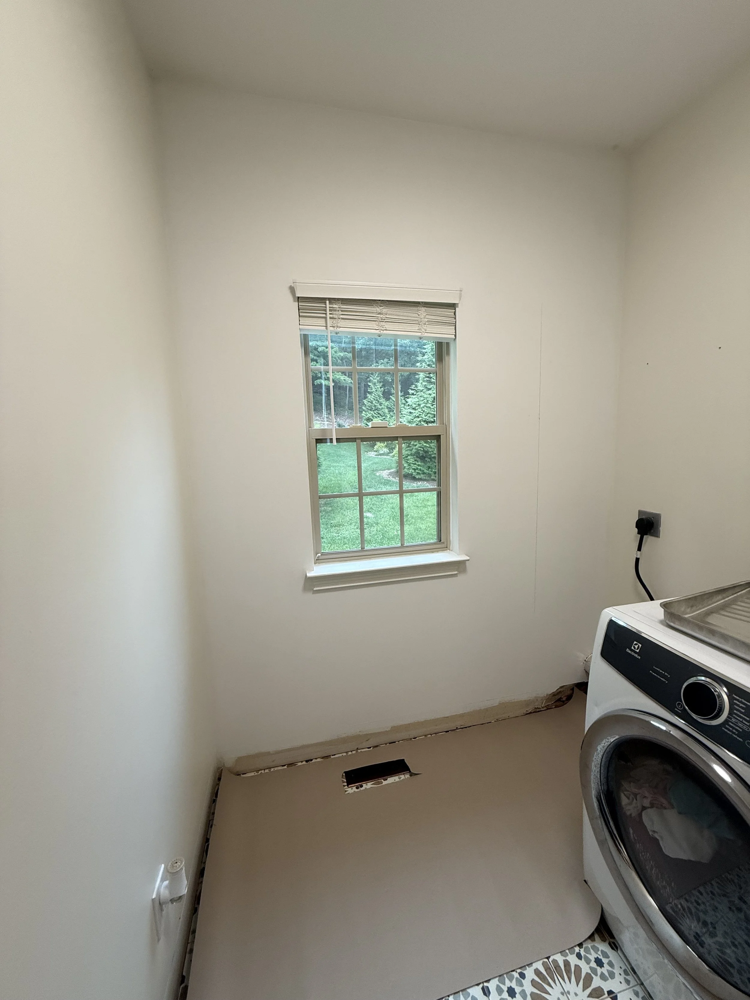 For this project, we installed wallpaper in the dining room, powder room, and laundry room to add personality and style throughout the home. The dining room was transformed with a soft floral feature wall paired beautifully with the existing wainscoting for a timeless and elegant look. In the powder room, a bold botanical print created a high-end statement in a smaller space, while the laundry room received a patterned accent wall that brought charm and character to a functional area. Each space was prepped and finished with precision, ensuring smooth seams, clean lines, and a polished result.